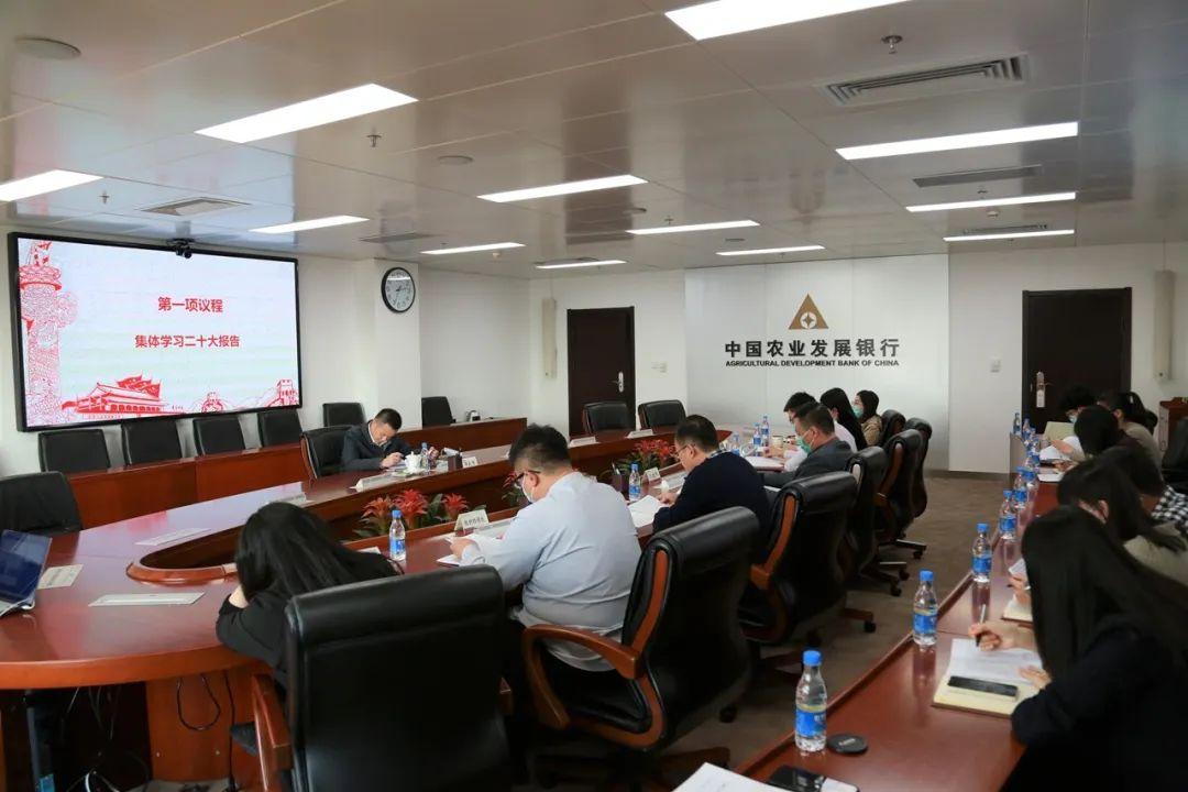 信貸管理部黨支部第一時(shí)間組織開(kāi)展支部集體學(xué)習(xí),支部書(shū)記領(lǐng)學(xué)黨的二十大報(bào)告,并就學(xué)習(xí)貫徹作出安排部署。全體黨員員工在北京、珠海兩地參加學(xué)習(xí)。大家一致認(rèn)為,習(xí)近平總書(shū)記所作的報(bào)告高舉旗幟、主題鮮明、氣勢(shì)恢宏、高瞻遠(yuǎn)矚,是舉旗定向的政治宣言、繼往啟新的科學(xué)指引、引路領(lǐng)航的戰(zhàn)略擘畫(huà)、踔厲奮發(fā)的行動(dòng)綱領(lǐng)、自信主動(dòng)的趕考指南,集中展現(xiàn)了中國(guó)之路的時(shí)代光輝、中國(guó)之治的世界價(jià)值、中國(guó)之理的實(shí)踐偉力。會(huì)議強(qiáng)調(diào),要把學(xué)習(xí)貫徹黨的二十大報(bào)告精神作為當(dāng)前和今后一段時(shí)期的首要政治任務(wù),精心組織安排,通過(guò)多種方式深入學(xué)習(xí)領(lǐng)會(huì),做到學(xué)深學(xué)透,增強(qiáng)“支農(nóng)為國(guó)、立行為民”的責(zé)任擔(dān)當(dāng),在推動(dòng)高質(zhì)量信貸管理中實(shí)現(xiàn)新作為。要以二十大報(bào)告精神為指導(dǎo),深刻領(lǐng)悟“兩個(gè)確立”的決定性意義,堅(jiān)決做到“兩個(gè)維護(hù)”,堅(jiān)決貫徹落實(shí)黨中央、國(guó)務(wù)院決策部署和總行黨委工作安排,將二十大報(bào)告學(xué)習(xí)和日常工作結(jié)合起來(lái),立足崗位、積極履職,把學(xué)習(xí)成果轉(zhuǎn)化為強(qiáng)大動(dòng)力,以更高站位、更寬視野、更高目標(biāo)、更實(shí)舉措,為全面建成社會(huì)主義現(xiàn)代化強(qiáng)國(guó)、以中國(guó)式現(xiàn)代化全面推進(jìn)中華民族偉大復(fù)興貢獻(xiàn)政策性金融力量。