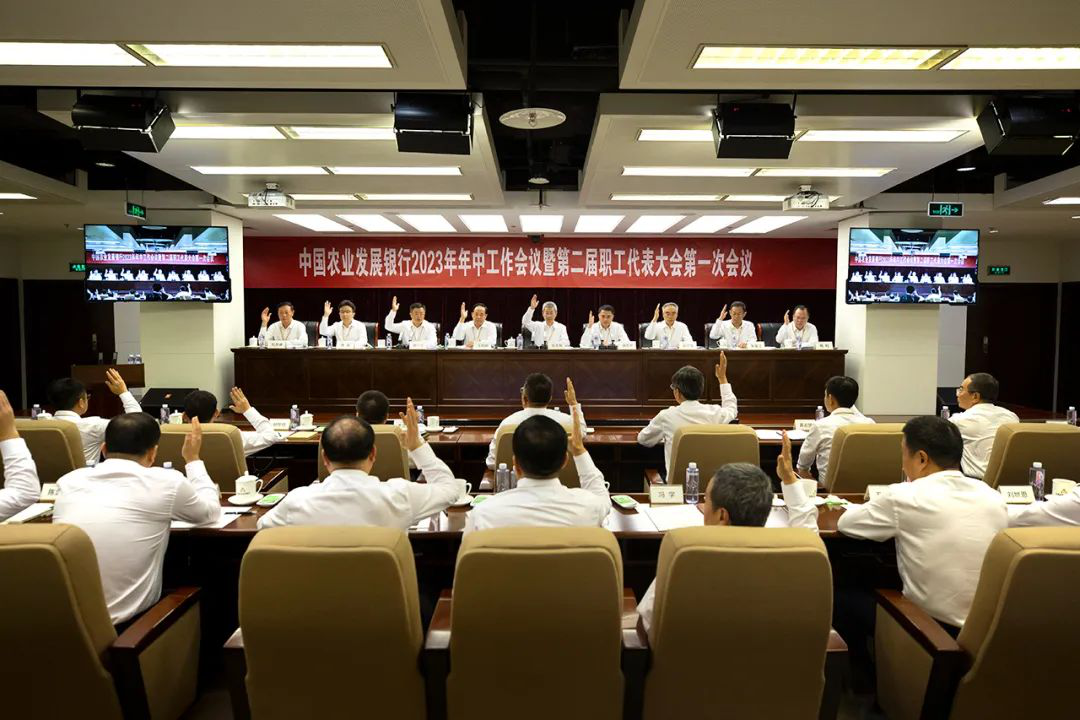 2023年7月13日,中國農(nóng)業(yè)發(fā)展銀行召開第二屆職工代表大會第一次會議。會議以“現(xiàn)場+視頻”形式召開,總行機(jī)關(guān)設(shè)主會場,各省級分行設(shè)分會場。中國農(nóng)業(yè)發(fā)展銀行黨委書記、董事長錢文揮出席并講話,黨委副書記、行長湛東升作行務(wù)工作報告,黨委委員、副行長、工會委員會主席徐一丁作企業(yè)民主管理工作報告??傂蓄I(lǐng)導(dǎo)班子成員及高管、總行機(jī)關(guān)、各分支機(jī)構(gòu)選出的第二屆職工代表共237人分別在主會場和分會場參加了大會,總行各部室負(fù)責(zé)人列席了大會。