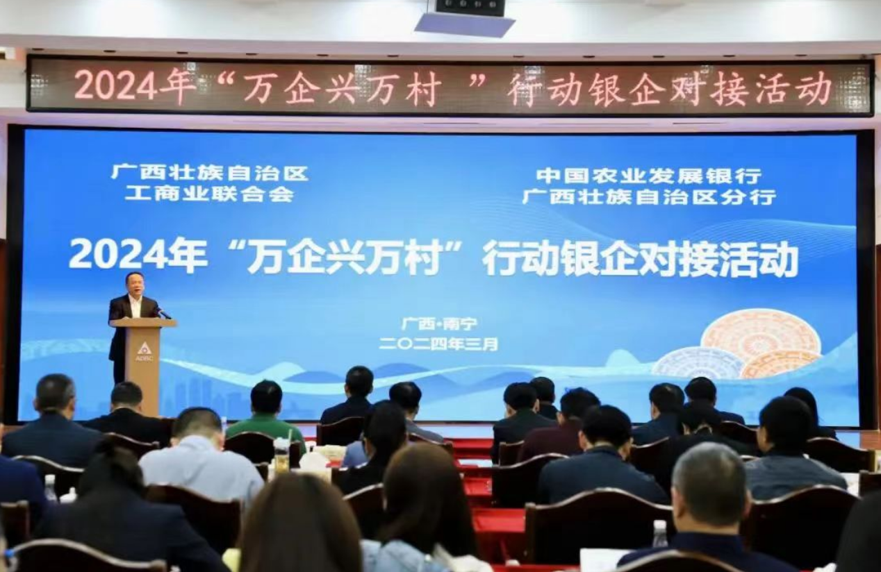 ▲廣西區(qū)分行與自治區(qū)工商聯(lián)舉辦“萬企興萬村”行動銀企對接活動