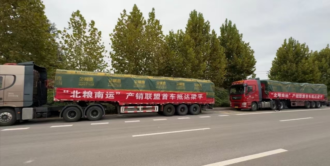 ▲“北糧南運”產(chǎn)銷聯(lián)盟首車糧食抵達梁平