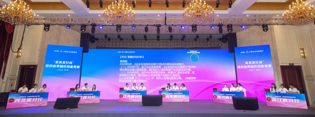 在中華人民共和國成立75周年、農(nóng)發(fā)行成立30周年之際,總行組織開展勞動(dòng)和技能競賽,是對貫徹落實(shí)中央金融工作會(huì)議精神、踐行中國特色金融文化、抓好業(yè)務(wù)發(fā)展和基礎(chǔ)管理成果的一次集中檢閱。在總行黨委的堅(jiān)強(qiáng)領(lǐng)導(dǎo)下,總行國際部、信用審批部、工會(huì)團(tuán)委工作部、行政服務(wù)部通力合作、協(xié)同聯(lián)動(dòng)、聚力創(chuàng)新,競賽內(nèi)容首次同時(shí)涵蓋前臺、中臺、后臺3個(gè)條線,初賽首次采用選拔機(jī)制,全行3000余名職工積極參與,充分展示了農(nóng)發(fā)行廣大職工朝氣蓬勃、敢闖敢拼、奮發(fā)向上的精神風(fēng)貌。