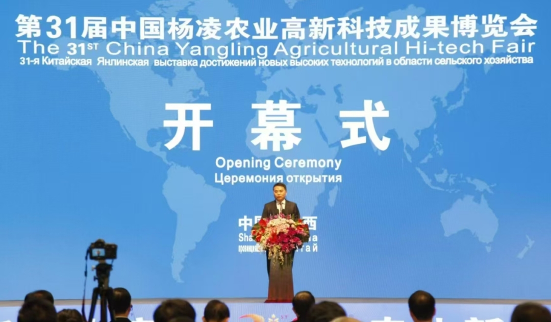 1025日,農(nóng)發(fā)行黨委書(shū)記湛東升在陜西省楊凌農(nóng)業(yè)高新技術(shù)產(chǎn)業(yè)示范區(qū)出席31屆中國(guó)楊凌農(nóng)業(yè)高新科技成果博覽會(huì)開(kāi)幕式并致辭。