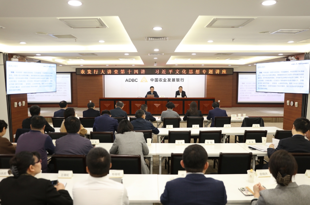 近日,農(nóng)發(fā)行舉辦2024年第十四期“農(nóng)發(fā)行大講堂”,邀請(qǐng)中央黨校(國(guó)家行政學(xué)院)文史部教授張城作“習(xí)近平文化思想”專題講座。駐行紀(jì)檢監(jiān)察組、總行各部室、直管直屬機(jī)構(gòu)負(fù)責(zé)人及員工在總行報(bào)告廳參加講座。