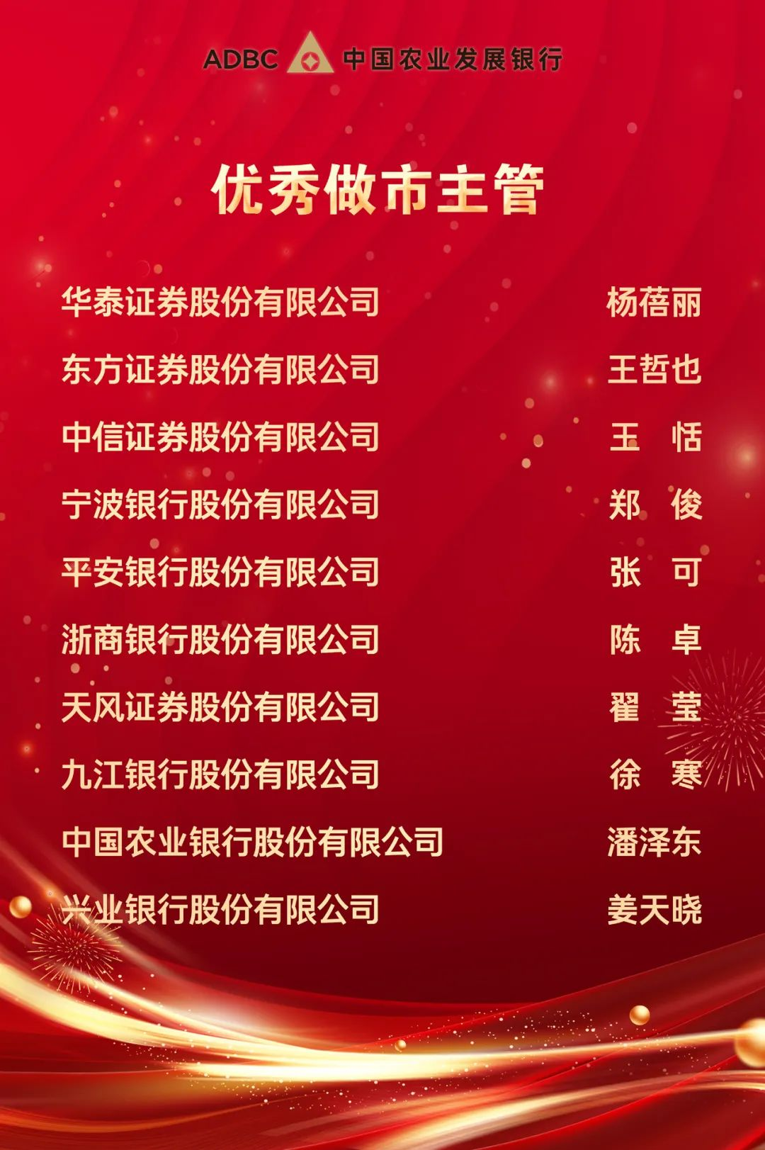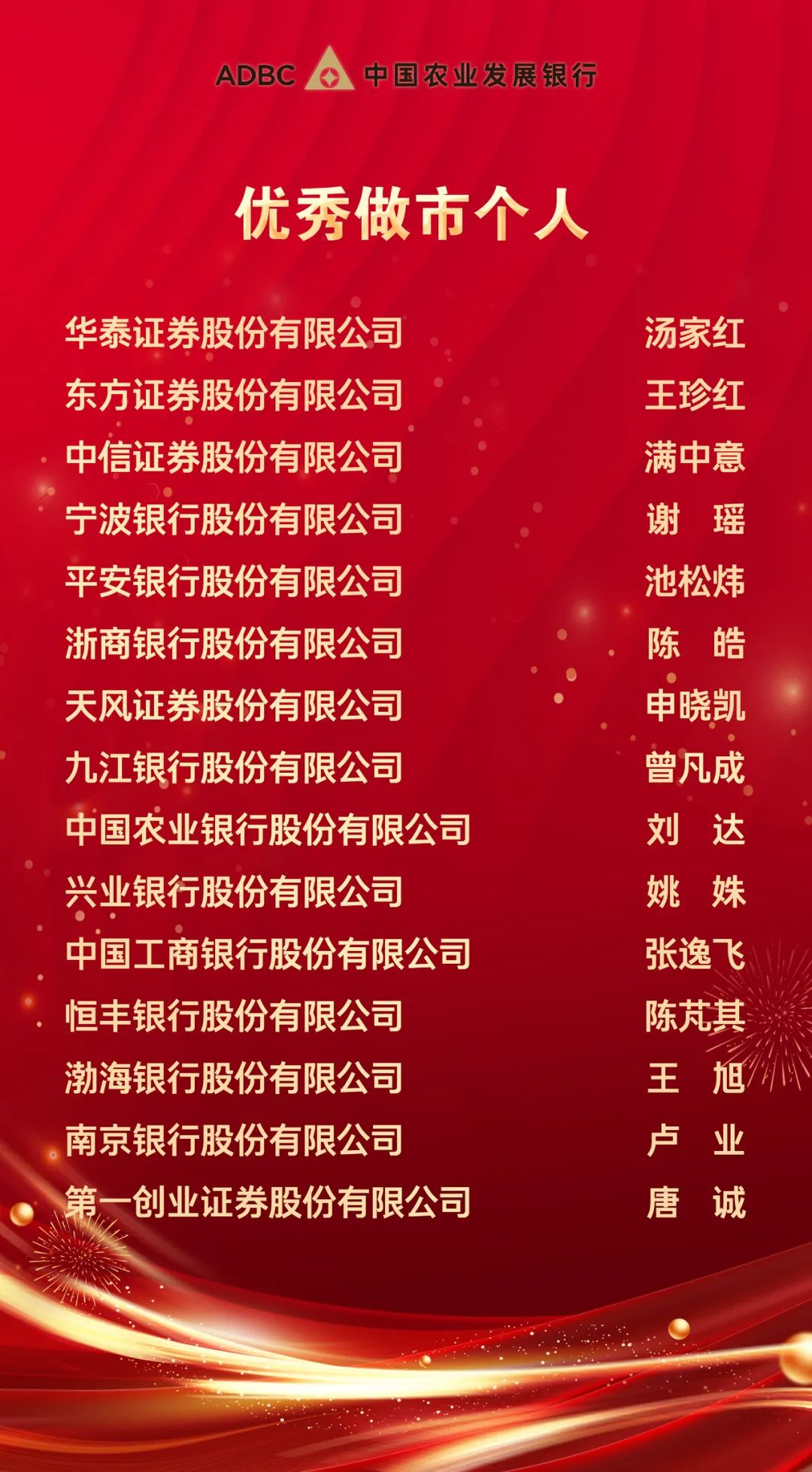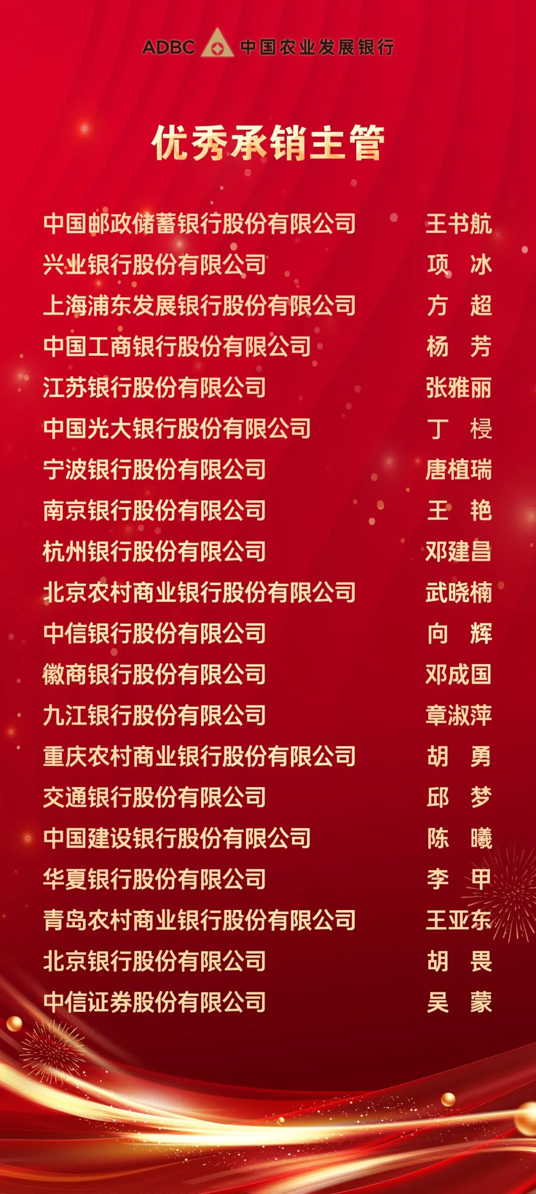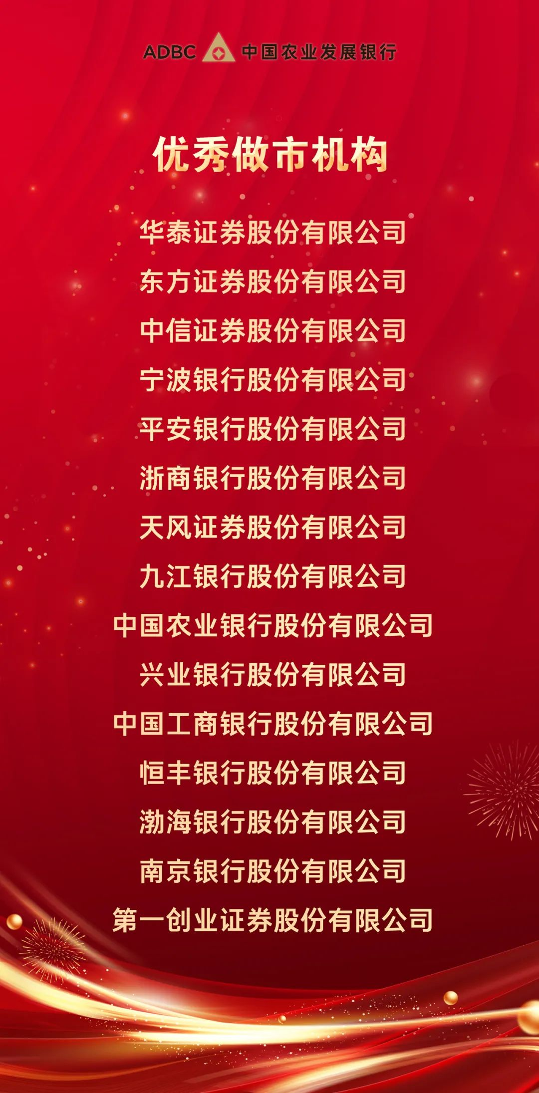 中國農(nóng)業(yè)發(fā)展銀行表彰2024年度金融債券優(yōu)秀承銷做市機構(gòu)及優(yōu)秀個人