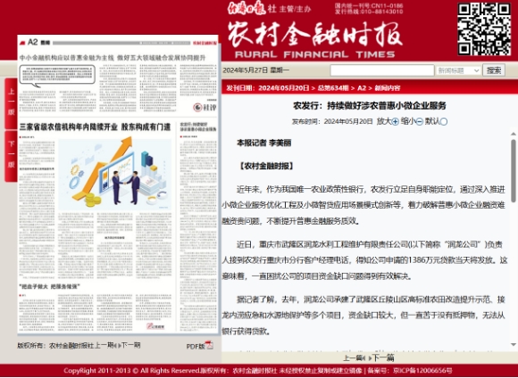 潤龍公司就通過“小微智貸”系統(tǒng),成功獲得農(nóng)發(fā)行重慶市分行系統(tǒng)內(nèi)首筆“融擔(dān)貸”1386.38萬元,用于支持涉農(nóng)小微企業(yè)日常經(jīng)營流動(dòng)資金需求。該筆貸款的投放,標(biāo)志著農(nóng)發(fā)行重慶市分行首次實(shí)現(xiàn)小微智貸應(yīng)用場景的線上辦貸管貸。