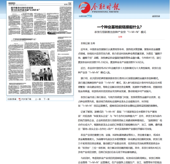 近日,農(nóng)業(yè)農(nóng)村部發(fā)布2023年金融支農(nóng)十大創(chuàng)新模式與十大典型案例,農(nóng)發(fā)行良種產(chǎn)業(yè)貸“1+M+N”模式入選。