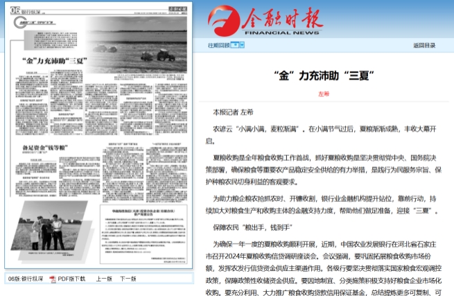 為助力糧企糧農(nóng)搶抓農(nóng)時、開鐮收割,銀行業(yè)金融機構(gòu)提升站位,靠前行動,持續(xù)加大對糧食生產(chǎn)和收購主體的金融支持力度,幫助他們做足準(zhǔn)備,迎接“三夏”。