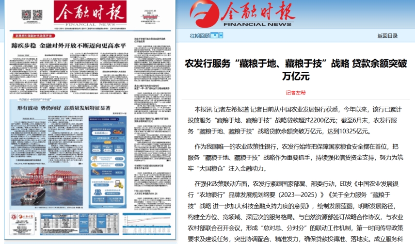 【金融時(shí)報(bào)】農(nóng)發(fā)行服務(wù)“藏糧于地、藏糧于技”戰(zhàn)略 貸款余額突破萬億元