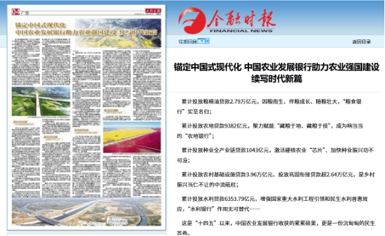 【金融時報】錨定中國式現代化 中國農業(yè)發(fā)展銀行助力農業(yè)強國建設 續(xù)寫時代新篇