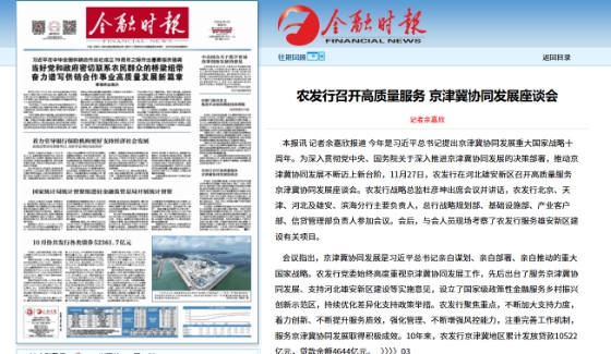 本報訊 記者余嘉欣報道 今年是習(xí)近平總書記提出京津冀協(xié)同發(fā)展重大國家戰(zhàn)略十周年。為深入貫徹黨中央、國務(wù)院關(guān)于深入推進(jìn)京津冀協(xié)同發(fā)展的決策部署,推動京津冀協(xié)同發(fā)展不斷邁上新臺階,11月27日,農(nóng)發(fā)行在河北雄安新區(qū)召開高質(zhì)量服務(wù)京津冀協(xié)同發(fā)展座談會。農(nóng)發(fā)行戰(zhàn)略總監(jiān)杜彥坤出席會議并講話,農(nóng)發(fā)行北京、天津、河北及雄安、濱海分行主要負(fù)責(zé)人,總行戰(zhàn)略規(guī)劃部、基礎(chǔ)設(shè)施部、產(chǎn)業(yè)客戶部、信貸管理部負(fù)責(zé)人參加會議。會后,與會人員現(xiàn)場考察了農(nóng)發(fā)行服務(wù)雄安新區(qū)建設(shè)有關(guān)項(xiàng)目。