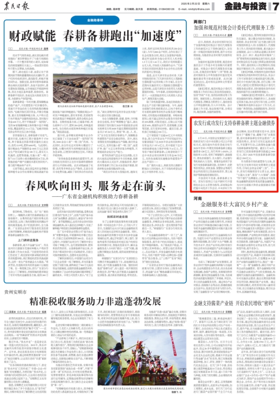不誤農(nóng)時不負(fù)春,春耕備耕正當(dāng)時。農(nóng)發(fā)行堅持以習(xí)近平新時代中國特色社會主義思想為指導(dǎo),深刻領(lǐng)會和把握中央經(jīng)濟(jì)工作會議、中央農(nóng)村工作會議精神,堅決貫徹落實黨中央、國務(wù)院關(guān)于“藏糧于地、藏糧于技”決策部署,面對春耕備耕信貸資金需求廣、時間緊的特點,農(nóng)發(fā)行切實扛起政治責(zé)任,早部署早行動,以政策性金融力量為春耕備耕保駕護(hù)航。截至2月14日,農(nóng)發(fā)行已投放春耕備耕貸款超過1000億元,預(yù)計2025年投放春耕備耕貸款超過1300億元。