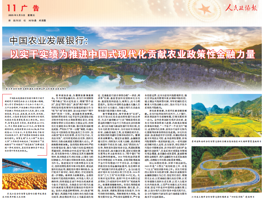 【人民政協(xié)報(bào)】以實(shí)干實(shí)績(jī)?yōu)橥七M(jìn)中國(guó)式現(xiàn)代化貢獻(xiàn)農(nóng)業(yè)政策性金融力量