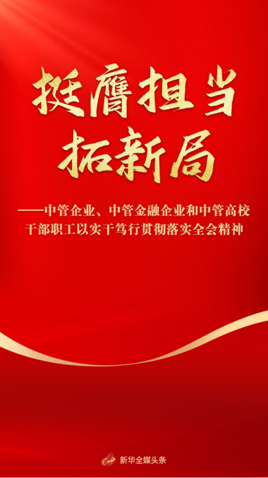 【新華社】挺膺擔當拓新局——中管企業(yè)、中管金融企業(yè)和中管高校干部職工以實干篤行貫徹落實全會精神