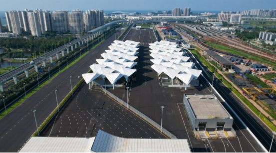 這是2025年9月23日拍攝的海口新海港和南港“二線口岸”(貨運)集中查驗場海關查驗區(qū)(無人機照片)。新華社記者 楊冠宇 攝