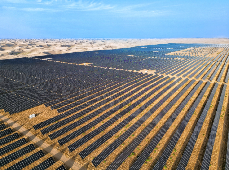 ▲農(nóng)發(fā)行貸款4.6億元,支持甘肅涼州區(qū)九墩灘100兆瓦光伏發(fā)電項(xiàng)目,建成后年均可節(jié)約標(biāo)準(zhǔn)煤5.8萬噸,減少二氧化碳排放當(dāng)量17.3萬噸。項(xiàng)目在光伏板外圍栽種阻沙林帶、內(nèi)部栽植低矮灌木,有效防風(fēng)固沙。