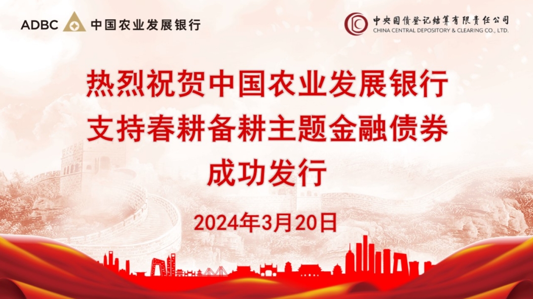 3月20日,中國農(nóng)業(yè)發(fā)展銀行在中央結(jié)算公司以公開招標(biāo)方式,面向全球投資者成功發(fā)行2024年首單1年期支持春耕備耕主題金融債券90億元,發(fā)行利率為1.677%,認(rèn)購倍率3.47倍,受到了南京銀行、光大銀行、廣州銀行、渤海銀行、興業(yè)銀行等機構(gòu)的大力支持。募集資金將主要用于農(nóng)發(fā)行支持種子、化肥等農(nóng)資供應(yīng)以及農(nóng)機、農(nóng)業(yè)科技、耕地保護與糧食產(chǎn)能提升等春耕備耕重點領(lǐng)域的貸款投放。