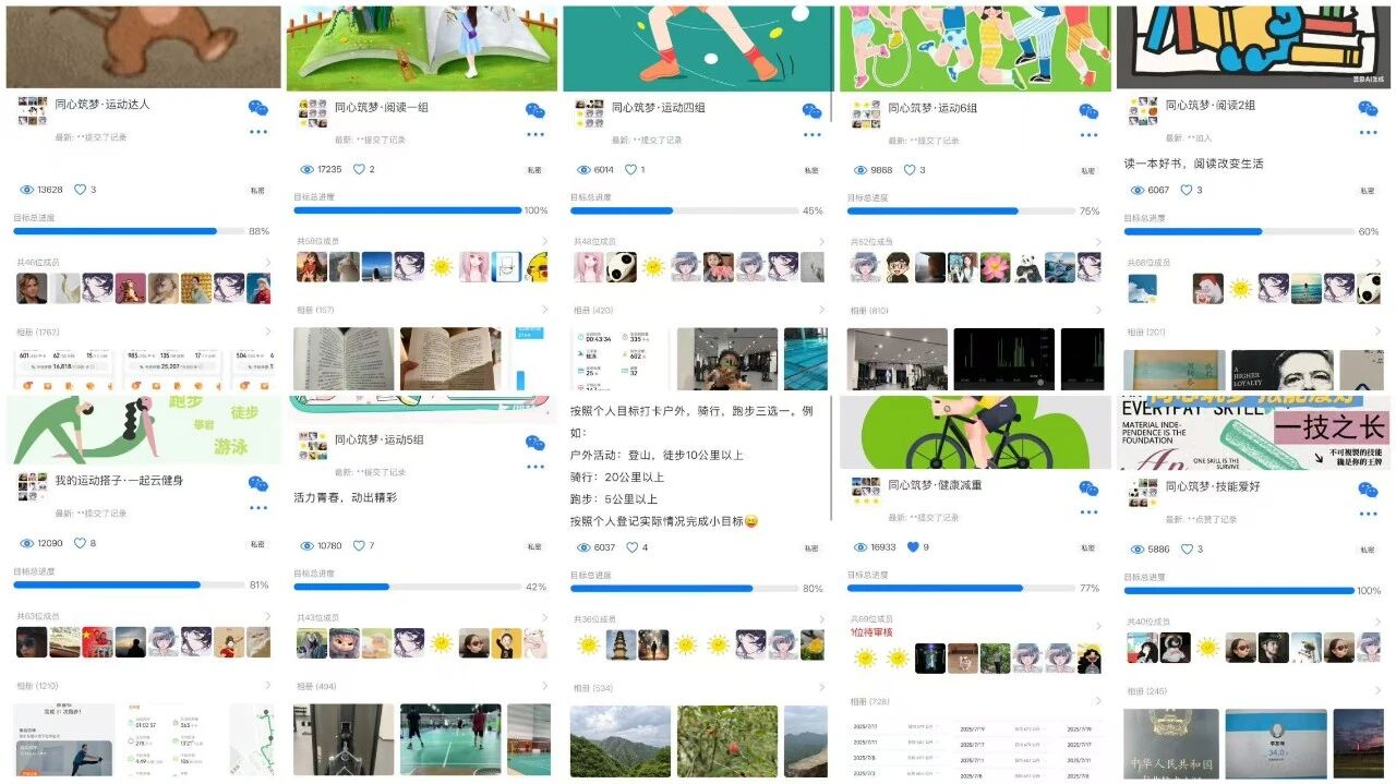 二是互助成網(wǎng)、督促有力。組建10個(gè)互助小組,各設(shè)2-3名管理員,管理員根據(jù)目標(biāo)性質(zhì)分別實(shí)行“日提醒”或“周督促”,并在群內(nèi)貼出完成率“紅榜”,帶動(dòng)組員跟跑;組內(nèi)線上分享經(jīng)驗(yàn)、實(shí)時(shí)互動(dòng),線下彼此督促,形成緊密的成長(zhǎng)共同體。