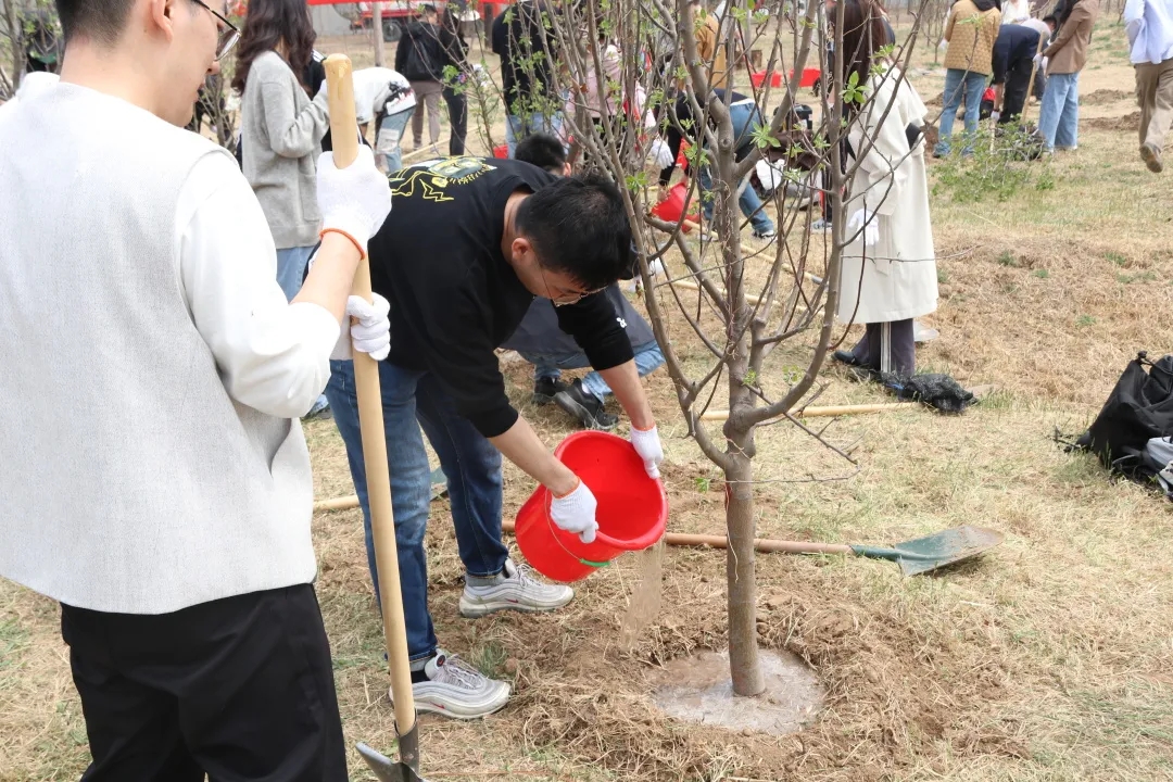 活動現(xiàn)場,青年們熱情高漲,干勁十足,紛紛拿起鋤頭、鐵鍬等工具,分工合作、互相配合,積極投入到植樹活動中,從挖坑、放苗到培土、澆水,每一道工序都一絲不茍,共同為這片土地播撒綠色的希望。經(jīng)過一番辛勤勞動,青年們合力種下24棵海棠樹苗,為大地增添了一抹新綠。大家不僅體驗了植樹的樂趣,更在汗水中收獲了友誼的果實。