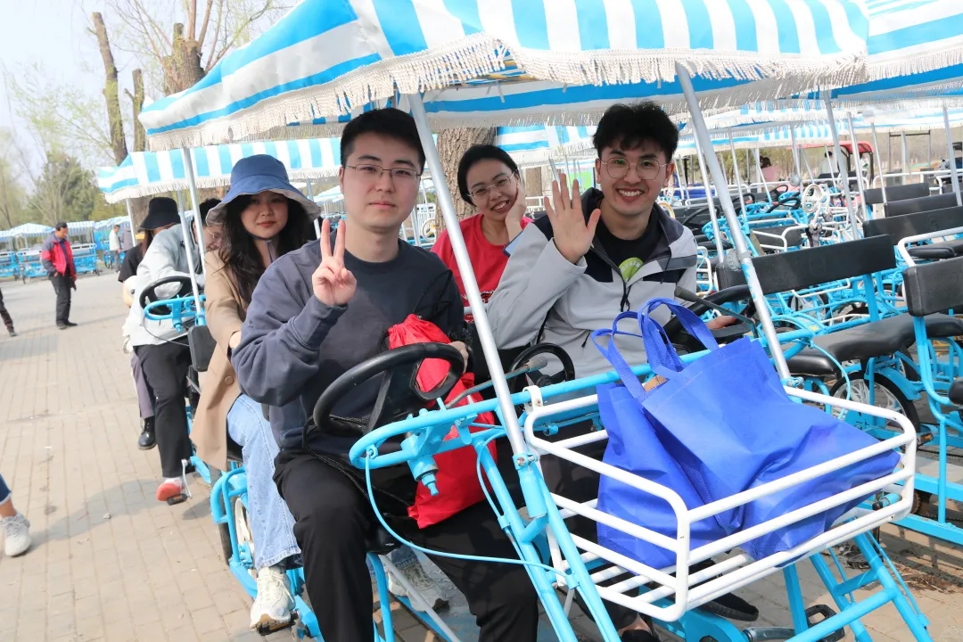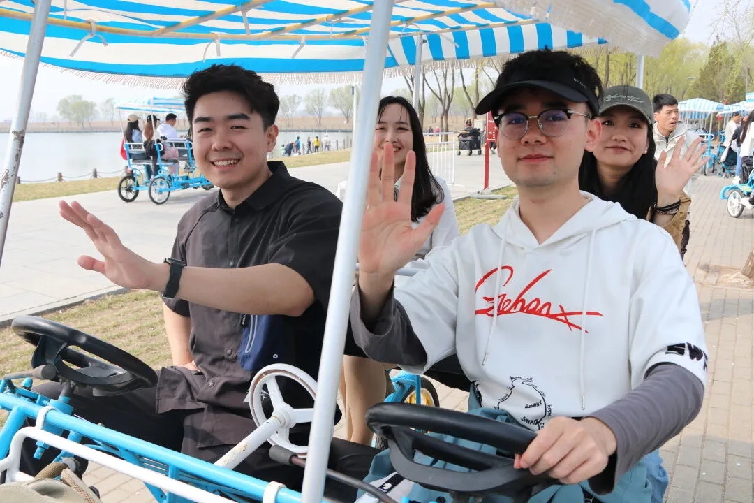 參加活動的青年們開展了形式多樣的交流,大家每四人一組乘坐一輛腳踏車?yán)@湖騎行暢談人生理想,還通過踢毽子、拋飛盤等文體活動加深了解,歡聲笑語此起彼伏,交談交心深度互動,現(xiàn)場洋溢著輕松歡快、奮發(fā)向上的青春氛圍。