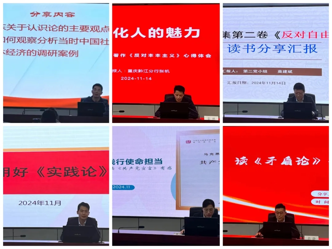在交流中,大家一致認(rèn)為,本次分享交流活動(dòng)形式新穎、內(nèi)容豐富、參與性強(qiáng)、效果明顯。自學(xué)加領(lǐng)學(xué)、分享加研討的方式,不僅有效激發(fā)了大家學(xué)理論悟理論的積極性,更帶動(dòng)實(shí)現(xiàn)了共同進(jìn)步提升。大家一致表示,要嚴(yán)格自我要求,持續(xù)抓好經(jīng)典著作研讀,更多從原著原文中感悟真理力量、增強(qiáng)哲學(xué)思維,以理論上的清醒確保政治上的堅(jiān)定。要主動(dòng)擔(dān)當(dāng)作為,立足實(shí)情實(shí)際,自覺(jué)用所知所學(xué)觀察新形勢(shì)、研究新情況、解決新問(wèn)題,推動(dòng)各項(xiàng)工作朝著正確方向、按照客觀規(guī)律推進(jìn),努力為服務(wù)農(nóng)發(fā)行高質(zhì)量發(fā)展作出更大貢獻(xiàn)。