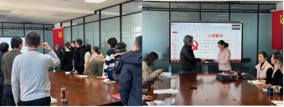 支部書記領誓,全體同志面對黨旗,重溫入黨誓詞,永葆誓言初心。全體同志表示要更加堅定理想信念,牢記初心使命,賡續(xù)紅色血脈,傳承奮斗精神,為推動全行高質量發(fā)展貢獻更大力量。